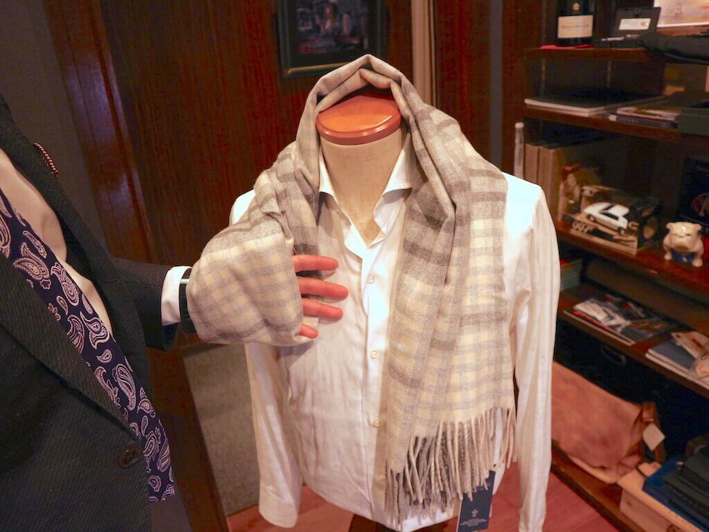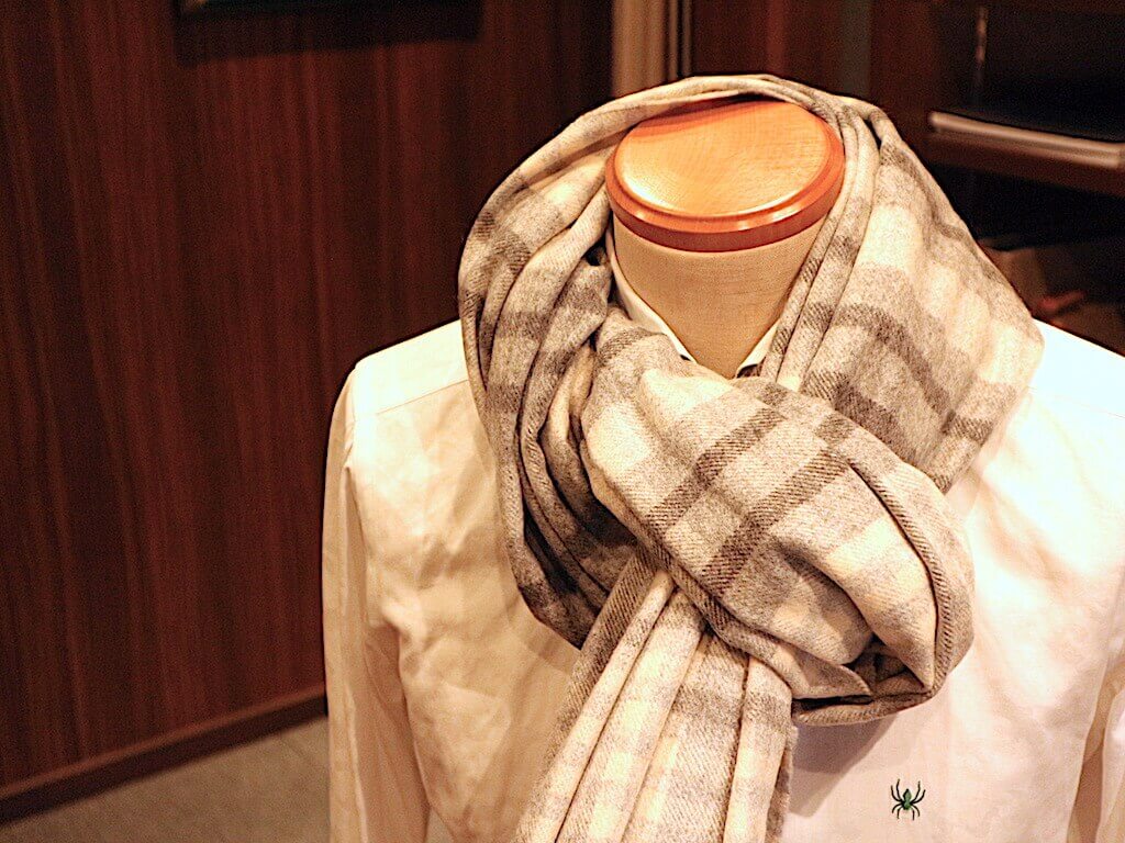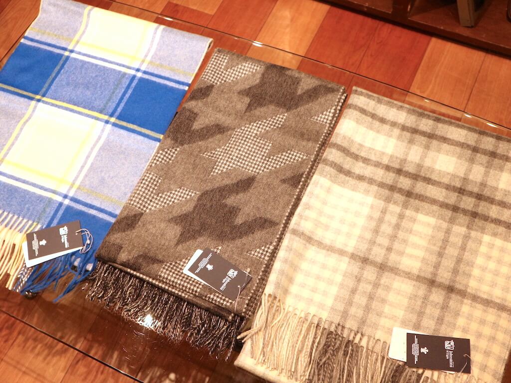 マフラーは「ジョンストンズ」、今季は千鳥格子柄とモノトーン推し