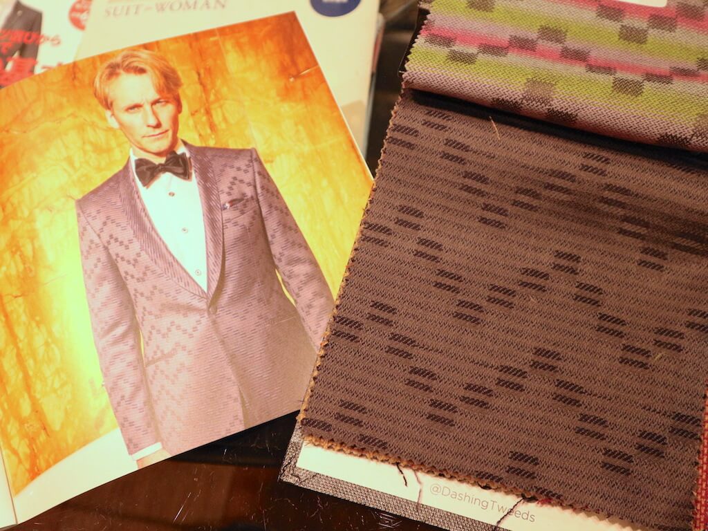 特殊な糸を使って光る生地や今までのツイードの概念を覆すようなデザインが特徴的。ジャケットやベストにすると、クリスマスの華やかな雰囲気にぴったりです。日本にはまだ扱う店舗が少ないので、人と違うオンリーワンも演出できます。