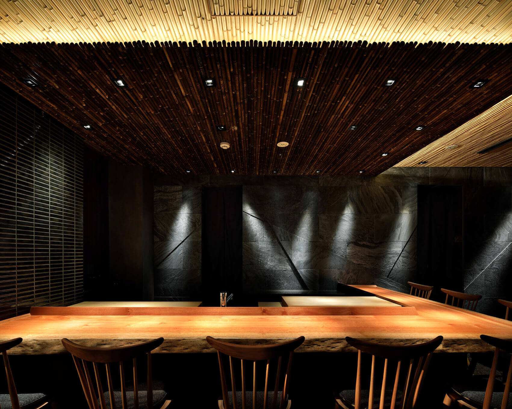平割の竹の美しさが光る天井は、隈研吾氏のデザインです。